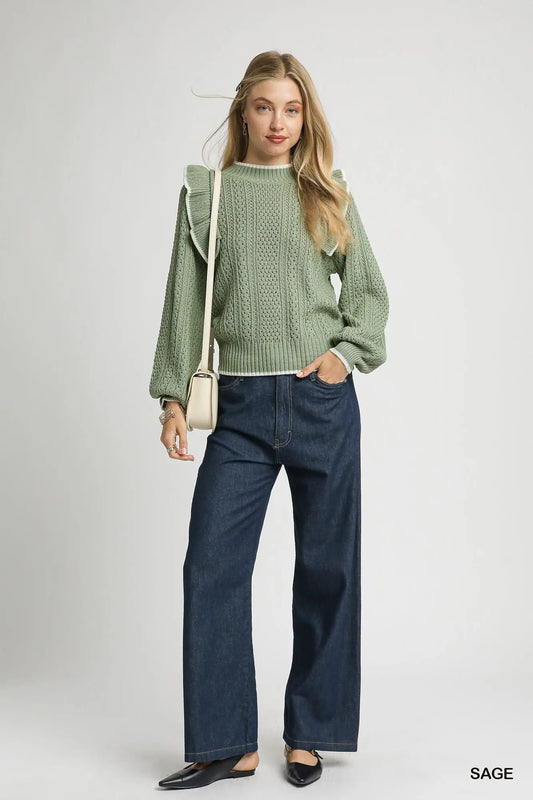 "Come My Way" Brown/Blue Bow Sweater by Umgee