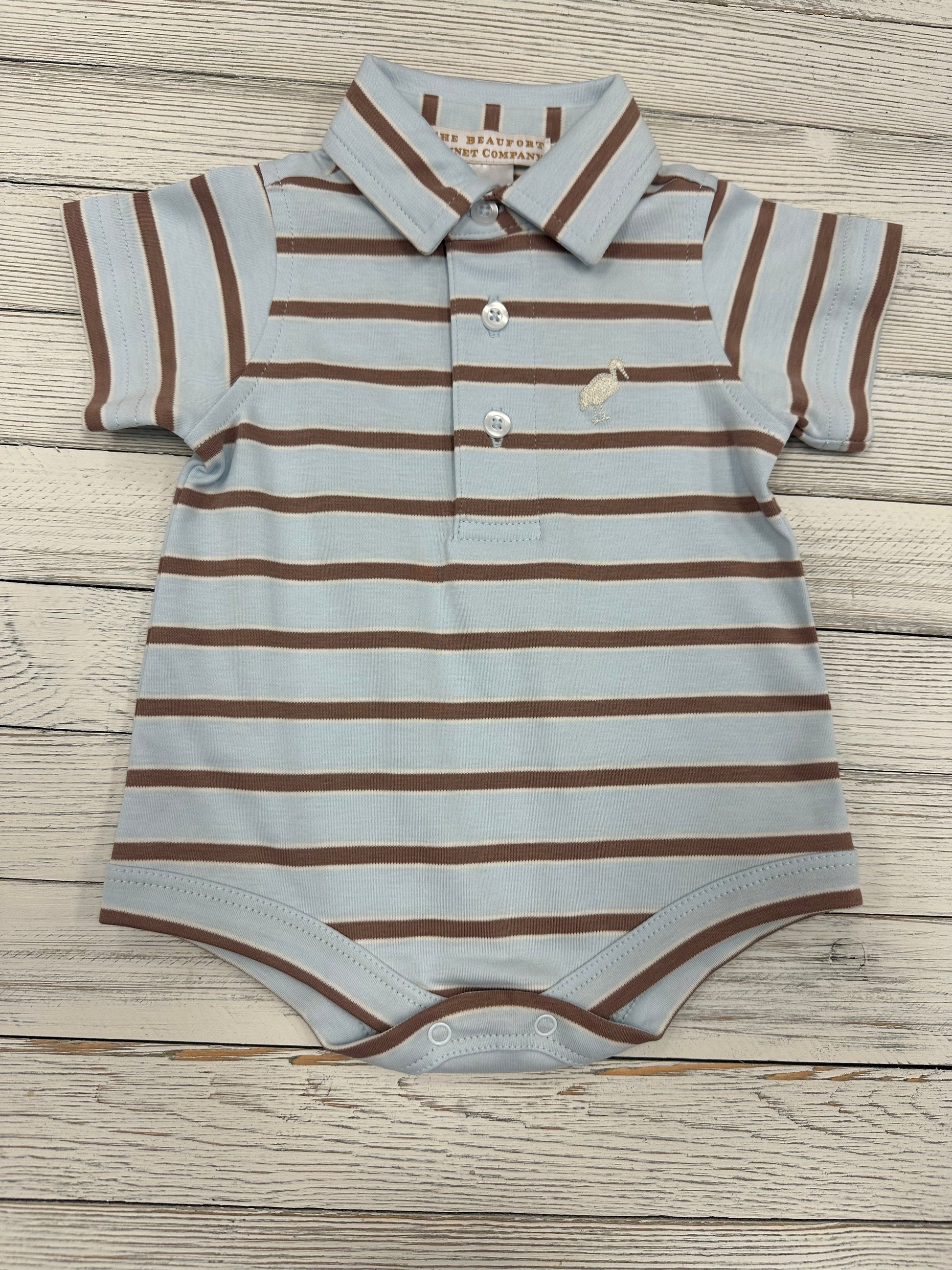 Beauford Bonnet Blue Palmetto & Grey Brown Onesie