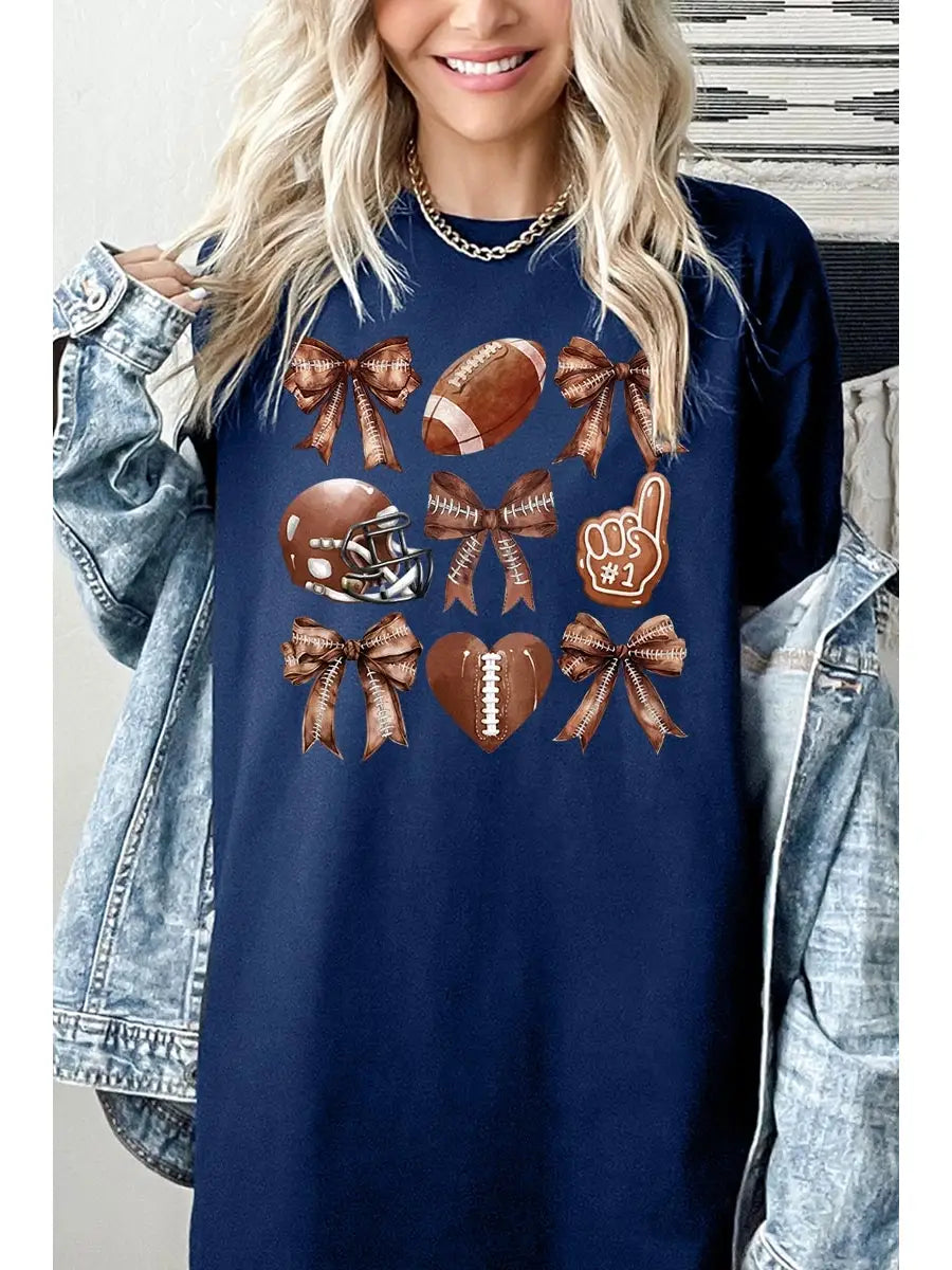 Coquette Navy Football & Bow Tee