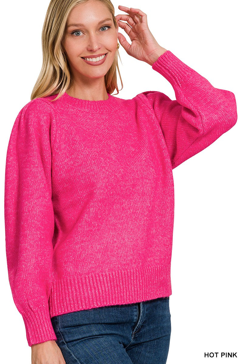 Pink Mélange Puff Sleeve Sweater