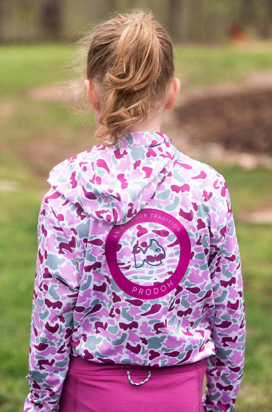 Prodoh Girl's Pro Performance Hoodie T-shirt in Pink Break Point Camo
