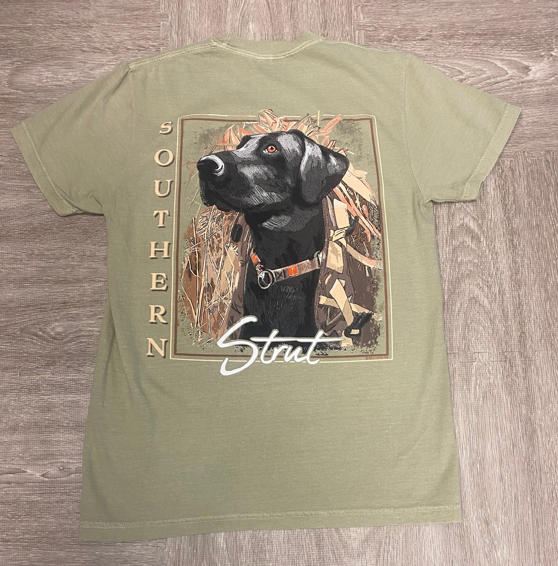 Southern Strut T-Shirt with Lab in Blinds in color Khaki